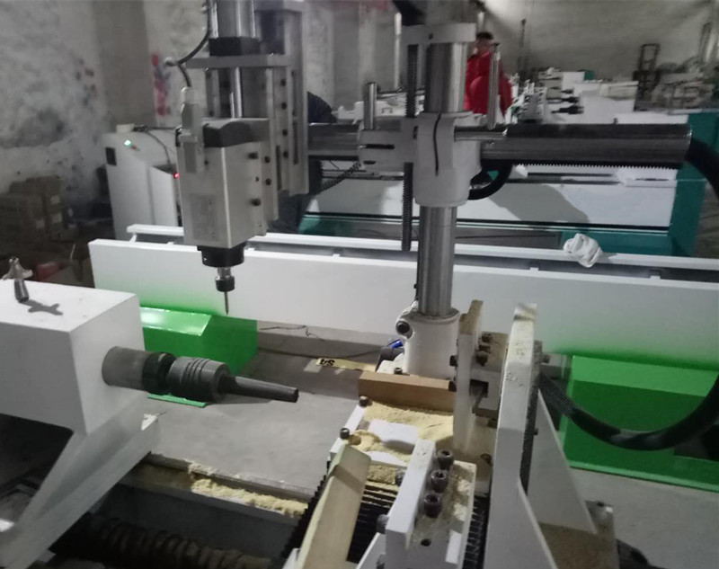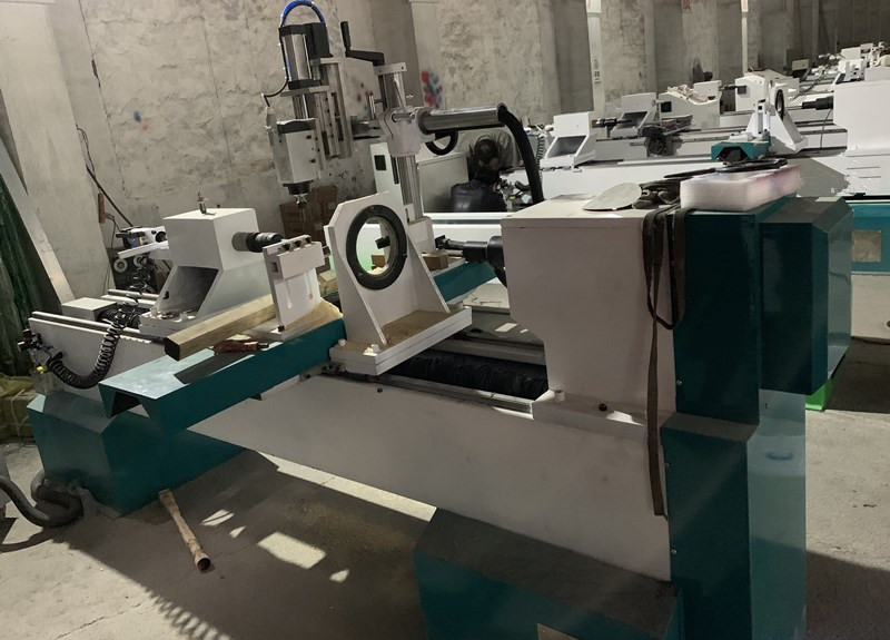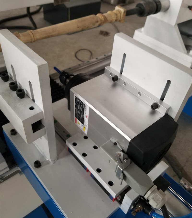 1. This machine with one spindle, one chuck and one backlash. This model support upgrade to two chucks and two backlash. You can mount on material to two chucks and compelete the work piece simultaneously. One operator could run 2-3 pcs of cnc wood lathe at the same time for saving salary cost.